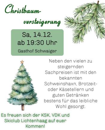 Auch in diesem Jahr haben wir am Samstag den 14.12.2024 um 19:30 Uhr unsere Christbaumversteigerung.