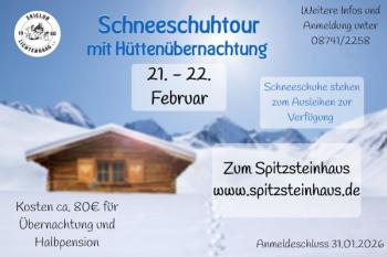 Diesmal geht es vom 21. - 22.02.2026 zum Spitzsteinhaus (www.spitzsteinhaus.de) in den Chiemgauer Alpen.